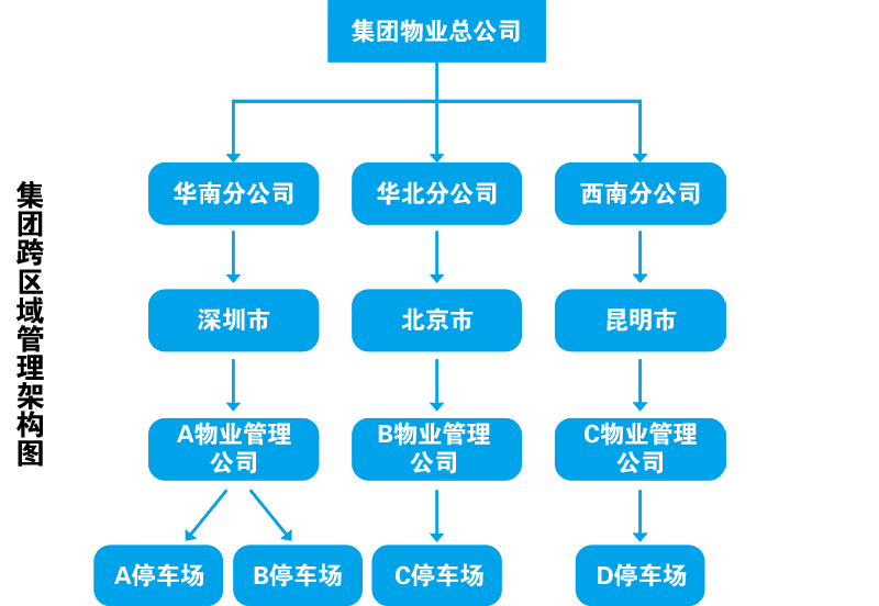 集团物业停车场管理跨区域联网、集中统一管理、实时监控各项数据,降低管理费用及管理工作难度,增加管理收益,确保财务数据安全,与集团物业平台数据对接,从停车场管理向停车场运营转变。